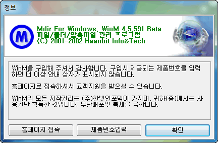 'winm_4.5.591b' 또는 'Win-Mdir_4.5_β'검색해보시면 어렵지 않게 등록판을 구하실 수 있습니다.