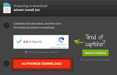 파일명이 winm4_install_kor.exe 인 것은 체험판입니다.