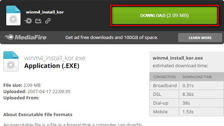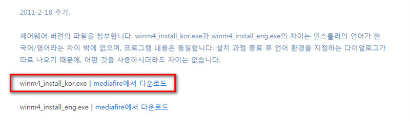 다운로드: http://www.mediafire.com/download/cm0yy1yme3z/winm4_install_kor.exe
