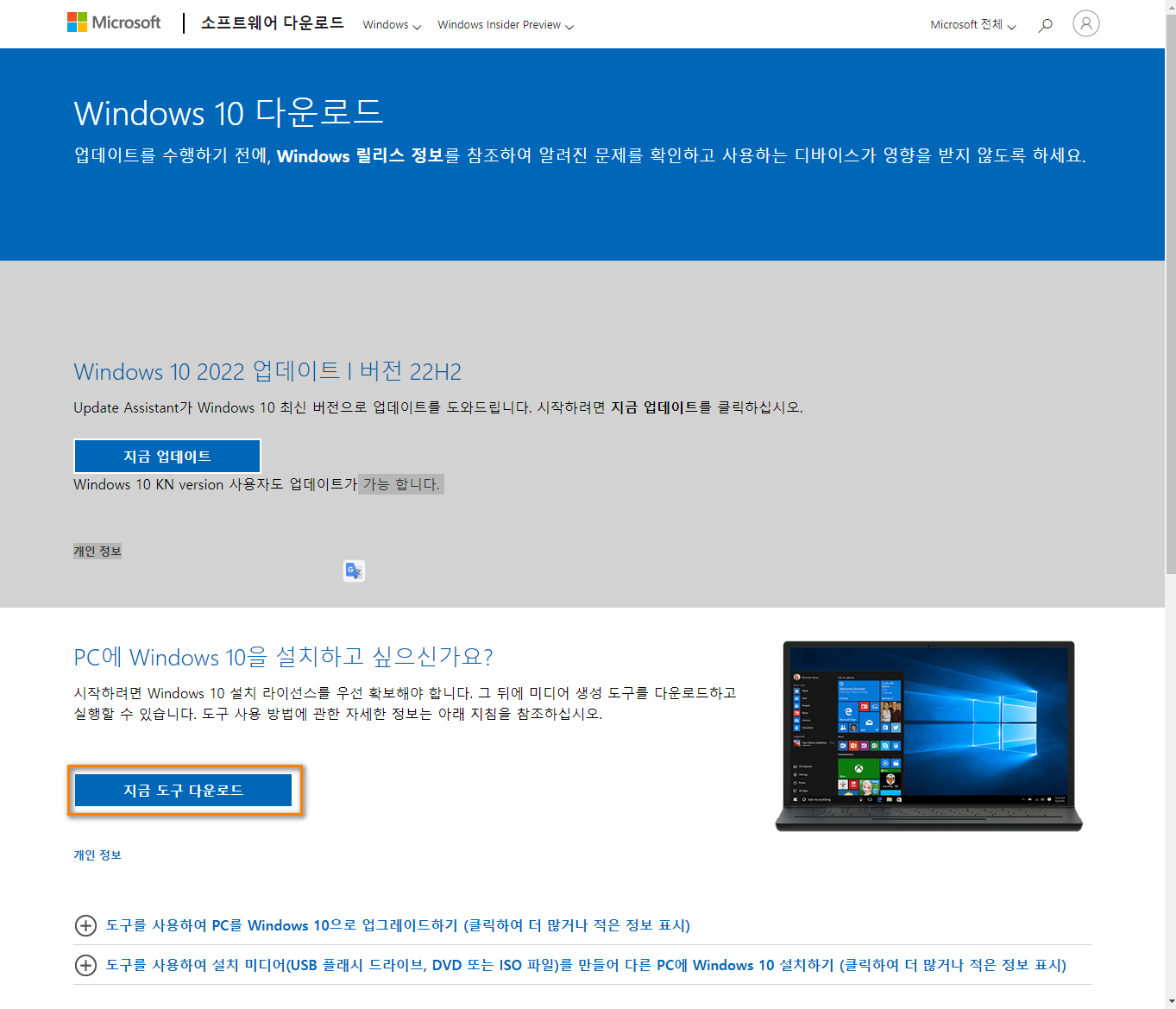 링크: https://www.microsoft.com/ko-kr/software-download/windows10