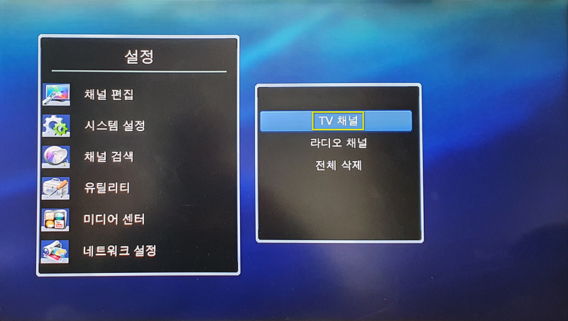 TV 채널 메뉴에서 OK(확인) 버튼을 누릅니다.