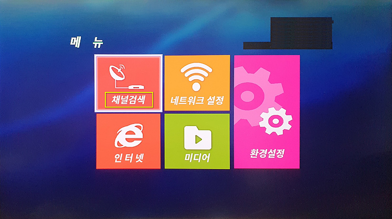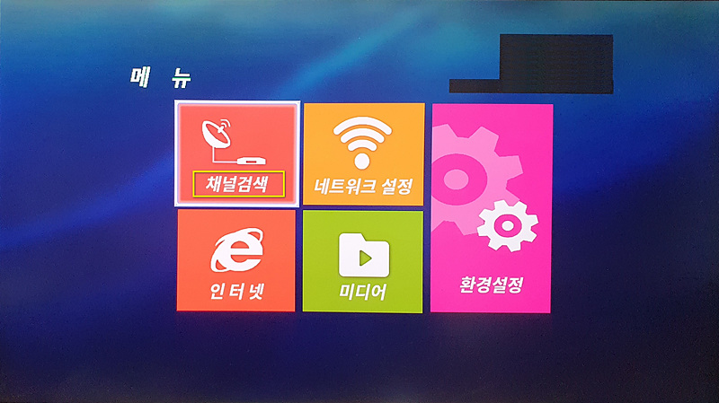 메뉴 창이 뜨면 채널검색 메뉴에서 OK(확인) 버튼을 누릅니다.