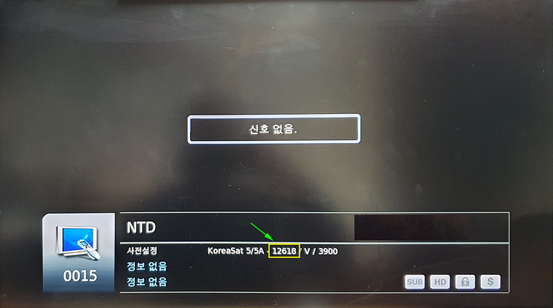 변경 전 채널 정보 상태일 경우 아래와 같이 '신호 없음'이 표시됩니다.