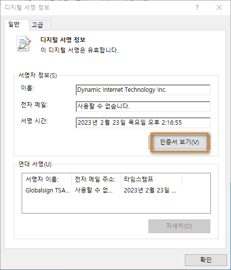 만약 위 디지털 서명 번호가 다르다면 변형된 프로그램일 가능성이 크므로 실행하지 마세요.