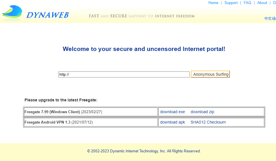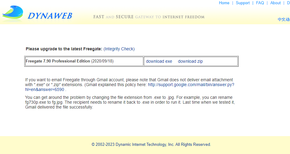 Integrity Check If you use Freegate in a hostile environment such as in a closed society, especially if your Freegate software is not directly downloaded from the Dynaweb official website (http://dongtaiwang.com/home_en.php), you should check its integrity